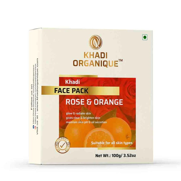 This KHADI ORGANIQUE ROSE & ORANGE FACE PACK combats free radicals; repairs damaged skin cells and promote synthesis of collagen for restoring youthful charm of skin. Rose Extract maintains skin’s pH balance & controls excess oil production which helps to strengthen & regenerate skin cells. It has ability to improve appearance of fine lines & brown spots caused by sun damage. This Face Pack naturally speed up the process of removing dead skin cells to reveals healthy & soft skin with refined glow and freshness to skin for providing luminous radiating skin.