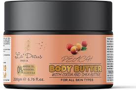 Pamper your skin with La' Decus Peach Body Butter. La' Decus Peach Body Butter infused with shea butter, cocoa butter and almond oil, which nourishes your skin deeply. Provide intense moisturization with two botanical actives- Shea & Cocoa Butter. An anti-inflammatory properties of shea butter can soothe dry skin. Cocoa butter contains a high amount of fatty acids, which help to hydrate the skin.