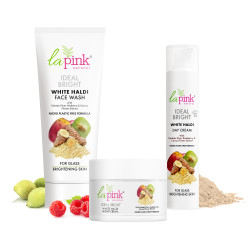 Begin your routine with the must-have Ideal Bright White Haldi Face Wash, enriched with Kakadu plum, Mulberry, and Cactus flower extract for skin lightening and brightening.