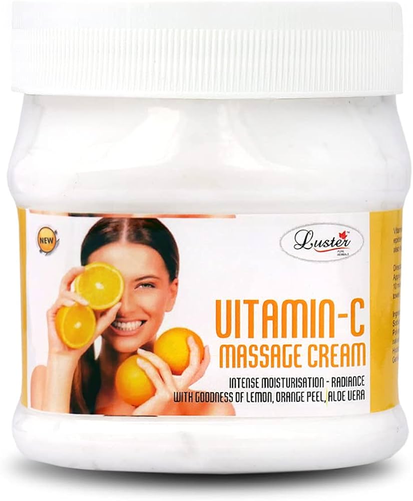 Luster Vitamin C Massage Cream With milk Protein and Vitamin E Helps Remove Epidermal sun tan, Restoring Natural Fairness of Skin and Also Pigmentation. Our Best Massage Cream For dry & oily Skin that Helps Fully Nourishment & Moisturizing. It Also Helps In Restoring Natural Skin Glow. This Massage Cream is a Special blend of Herbs Extracts Combined with other Herbal Ingredients in order to Provide You a Nourished, Glowing & Soft Textured Skin. It Enriched with the goodness of Vitamin E & Aloe Vera Extracts. It Helps moisturizes rough areas of the body as it facilitates the massage and Giving Soft & smooth Finish to Skin. It Gives You Brightens and Lighten Skin Appearances. Massage Cream For Women & Men and It suits all types of Face skin. Luster Vitamin C Massage Cream is an Excellent Massage Cream For deeply Nourishes & Clean your Tan skin. Our Luster Vitamin C Massage Cream Contains skin lightening Properties with an improved complexion. Our Best Luster Vitamin C Massage Cream For Facial & Glowing Skin.