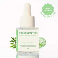 Acne Reduction a powerful serum that reduces oil production, irritation, and acne at the same time. It aims to eliminate the germs that cause acne, shield your skin, and leave it looking cleaner and healthier. Niacinamide brightens skin and lessens acne scarring.