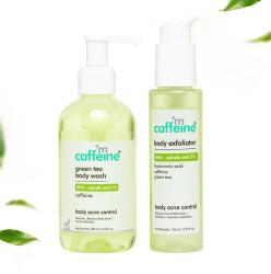 Clear skin days are here to stay with Body Acne Control Duo. A 2-step routine powered by BHA-Salicylic Acid & antioxidant-rich Green Tea, reduces stubborn body acne by deep cleansing and unclogging pores without making the skin dry. The body wash cleanses, washes off body acne and leaves skin refreshed! The body exfoliator works overnight to unclog and remove impurities from the pores to heal and prevent body acne. Enriched with soothing Green Tea, this active-based combo is suitable for all skin types, including sensitive skin.