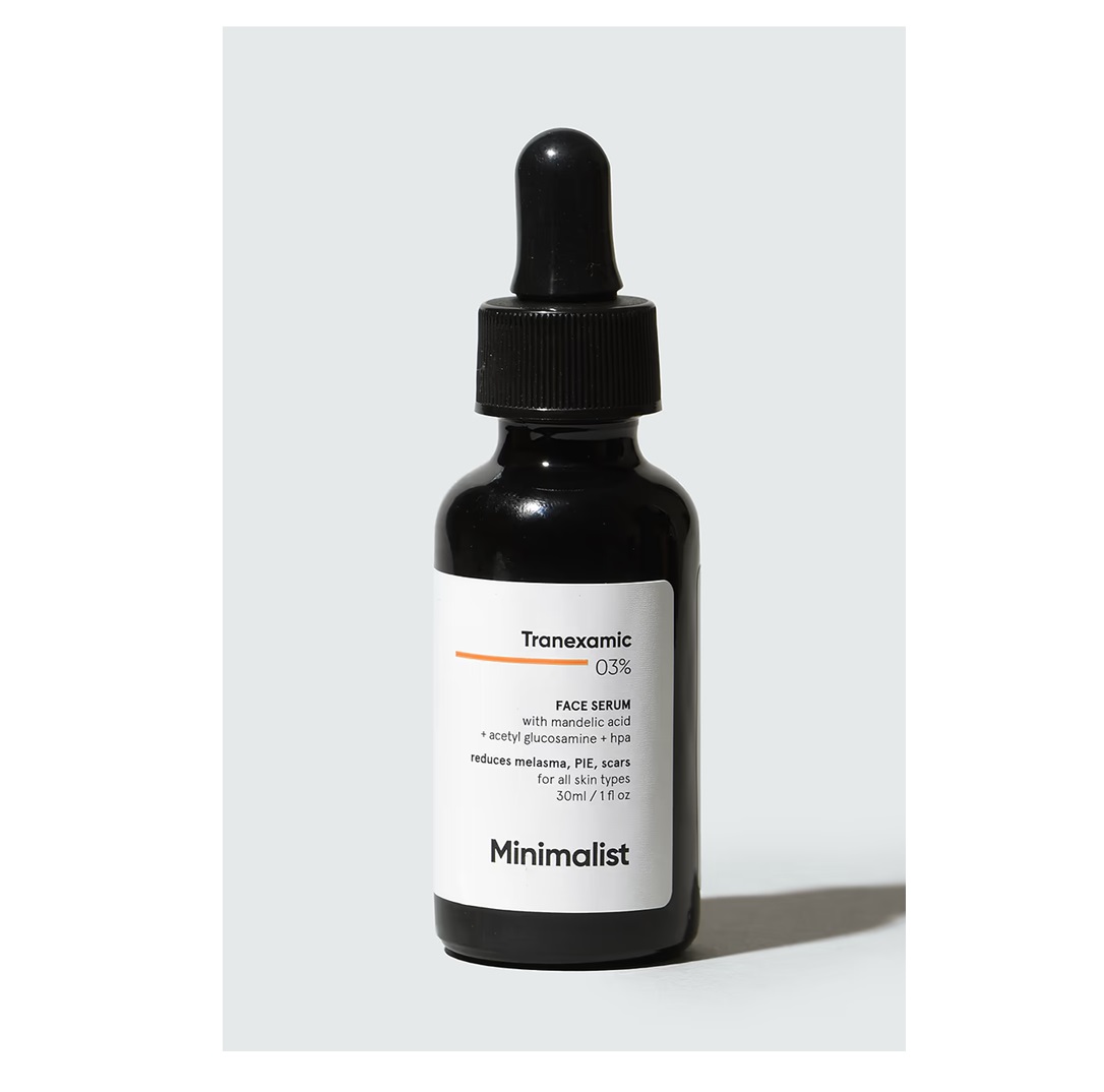 Made with 3% Tranexamic Acid, which is a derivative of the amino acid lysine. It reduces the activity of melanocyte tyrosinase thereby treating melasma, UV-induced hyperpigmentation, and other post-inflammatory hyperpigmentation
