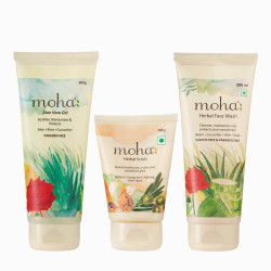 moha: Herbal Facewash 200ml (1 Unit) Is a Neem face wash with moisturizing herbs like Aloe, Rose & Cucumber to result in clear, soft & glowing skin. The sulfate-free, paraben-free formula makes it a non-drying face wash, suitable for all skin types: dry, oily and well as sensitive.