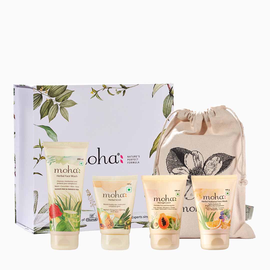Skin Care Gift Kit is specially curated to address all skin care problems through a selection of herbal and ayurvedic products that your skin will fall in love with. These handpicked products come packed in an adorable jute bag, placed inside the box, making it the perfect gift for your loved one.