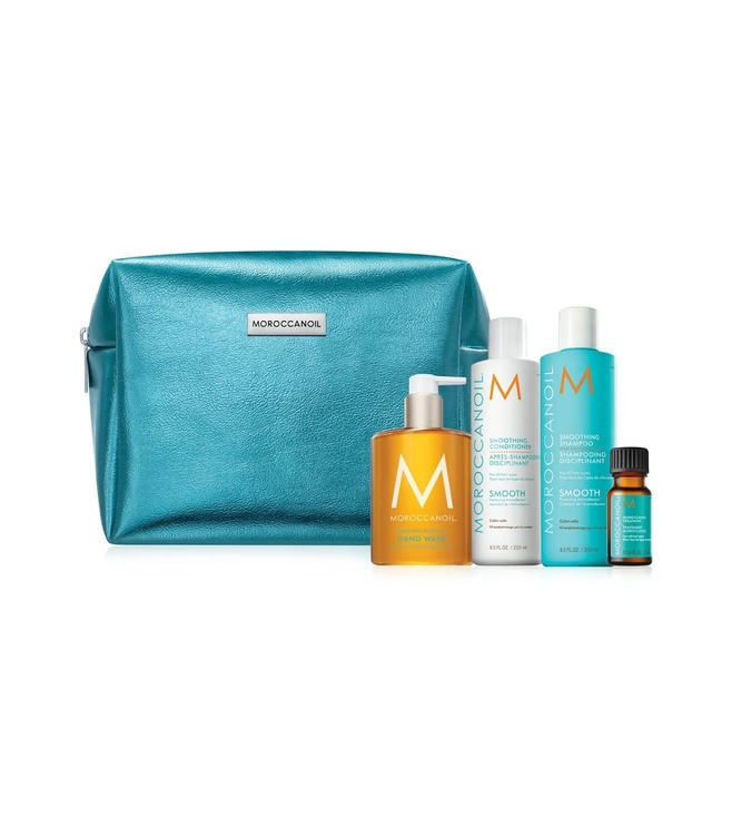 The perfect solution for frizzy and unmanageable hair that makes styling faster and easier. The Moroccanoil Smoothing Travel Kit comes complete with Smoothing Shampoo, Smoothing Conditioner and Treatment Oil, which work to simultaneously nourish and condition the hair to leave it soft, shiny and smooth. Get sleek, smooth hair and tame frizzy, unruly texture with the Moroccanoil Smooth Hair set. It features Smoothing Shampoo and Conditioner, which contain our proprietary AminoRenew™ ingredient to restore depleted amino acids and align hair’s natural keratin structure. It also includes a travel-sized Moroccanoil Treatment, which can be used on damp or dry hair to condition, detangle, fight frizz, and boost shine. Use together to maintain smoother, more manageable hair with a healthier look and feel.