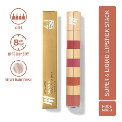 MyGlamm Super 4 Liquid Lipstick Stack- Nude Mood is the ultimate 4-in-1 liquid lipstick, which is made to revolutionize your makeup routine. Crafted with a luxurious velvet matte finish, this innovative stack boasts of 4 exquisite shades– Rose, Mauve, Brown, and Pink.