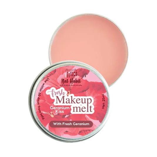 Kitchen fresh Makeup Melting & Cleansing balm made of five cold pressed oils blended with fresh geranium flower press, fresh squeezed lemon and orange. Melts stubborn makeup without drying or abrading skin. Alcohol and glycerine FREE. ZERO chemicals & preservatives. ZERO mineral oil & paraffins.