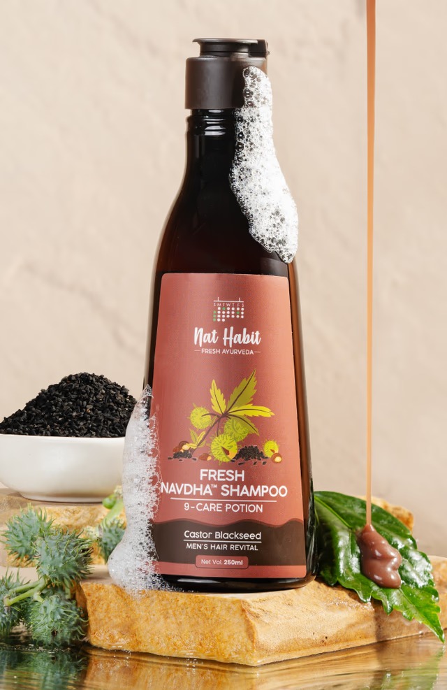 A wholesome 9-care shampoo prepared with a signature ayurvedic process. Made with hibiscus leaves, kalonji paste, castor, reetha & amla it is a sulphate-free, natural cleanser for men that nourishes and revitalises scalp & hair. No dryness, no damage.