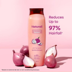 Still relying on sulphates for lather & deep cleanse of your hair? It’s time to revamp your haircare regime. Introducing Naturali Hairfall Arrest Shampoo with luxurious lather and nourishing texture without SLS & paraben. Infused with Red Onion & Bhringraj, this shampoo leaves your hair feeling squeaky clean without stripping off its moisture. It is loaded with the benefits of Red Onion & Bhringraj and proven to reduce up to 97% hair fall in just 2 weeks. Hairfall Arrest Shampoo also increases hair volume leaving you with lustrous locks that you would be proud of flaunting.