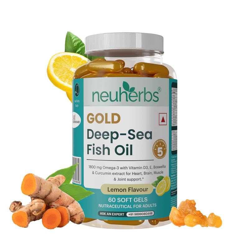 Neuherbs Gold Deep Sea Omega 3 Fish Oil : Vitamin E & D3 for Muscle, Brain & Joints Support to reduce inflammation, maintain heart, bone & brain function