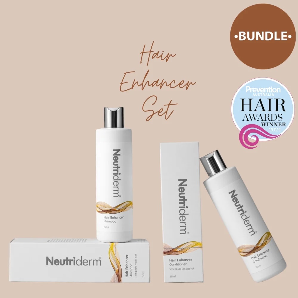 Deeply cleanse and nourish your hair with this Neutriderm hair Enhancer Set that includes Neutriderm Hair Enhancer Shampoo and Neutriderm Hair Enhancer Conditioner.