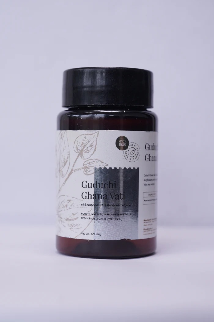 Guduchi Ghana Vati, an Ayurvedic formulation, enhances immunity and combats infections. Derived from the herb Guduchi (Tinospora cordifolia), it possesses anti-inflammatory and antioxidant properties. It supports liver health, aids digestion, and alleviates stress. Regular use can help maintain overall wellness and vitality, making it a valuable addition to daily health routines.