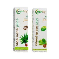 Aloe Vera is a multifaceted medicinal plant. The plethora of values and qualities that an Aloe Vera plant possesses can remotely be compared to any other plant or herb. In the world of Ayurveda it has earned the title of the silent healer and finds numerous mentions in the Ramayana, the Bible and the Vedas. Nutriorg Wheat Grass Juice is a wonderful combination of herbs that include Wheat Grass, Giloy & Tulsi. Wheat Grass helps in detoxification, strengthens immune system and prevents constipation. Wheat grass is instantly absorbed into the blood stream and is considered to give prompt energy.