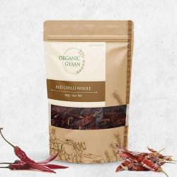 When you choose Organic Gyaan's whole red chilli, you can be confident that you are getting a product free from harmful chemicals, pesticides, and GMOs. We prioritize the well-being of both our consumers and the environment, ensuring that our organic chillies are grown without synthetic fertilizers or artificial additives.