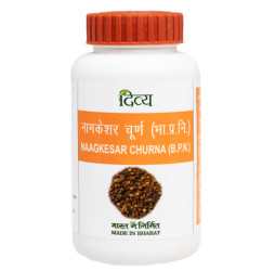 Divya Naagkeasr Churna is an ayurvedic product. It is one among Chaturjata group of herbs. It is used as in powder form along with other spices, and put into many herbal jams including Chyawanprash