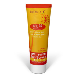 Patanjali Sun Screen Cream - Patanjali Sun Screen Cream made from the natural oils & extracts which protects the skin from harmful sun rays, norish & revitalize the complexion, to make skin fresh, smooth & beautiful. Help to protect from sun damage, rejuvenates the skin and increase skin glow.