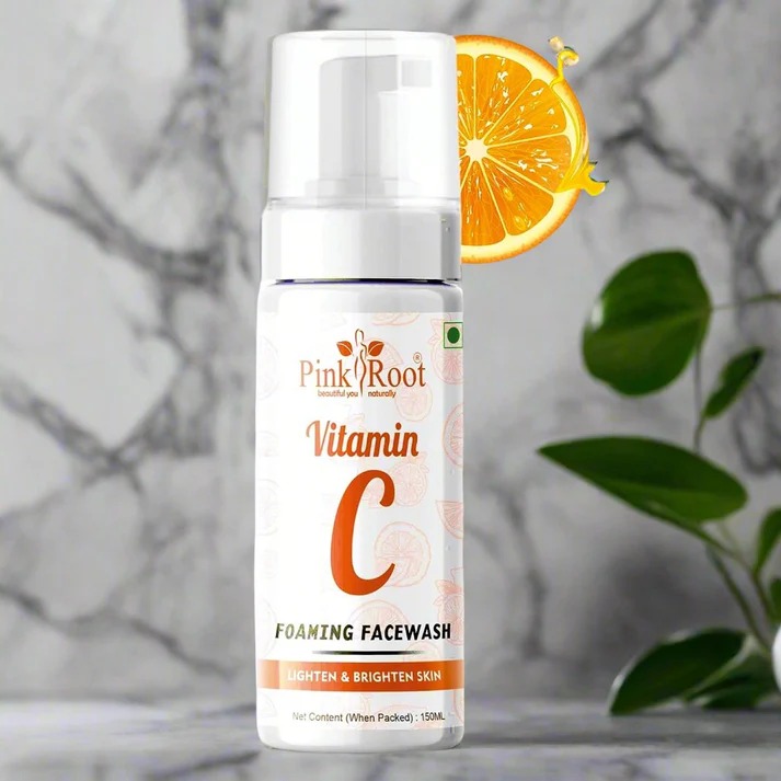 Pink Root Vitamin C Foaming Face Wash effortlessly reaches deep within the pores with the help of its built-in soft brush to clear out excess oil without disturbing your skin's natural moisture barrier. With its foaming texture, the face wash is gentle, yet highly effective. Goodness in a bottle! This naturally foaming face wash is crafted with vitamin C, turmeric, cucumber and aloe vera, that are Nature's powerhouses for your skin. This face wash is dermatologically tested. It has mild and pH-balanced cleansers that are suitable for all skin types.The combination of vitamin C and turmeric fights pigmentation arising from free radical damage and oxidative stress. It penetrates the skin pores to reduce surface oil and impurities, reverse sun damage, and delivers a radiant and even-toned complexion.