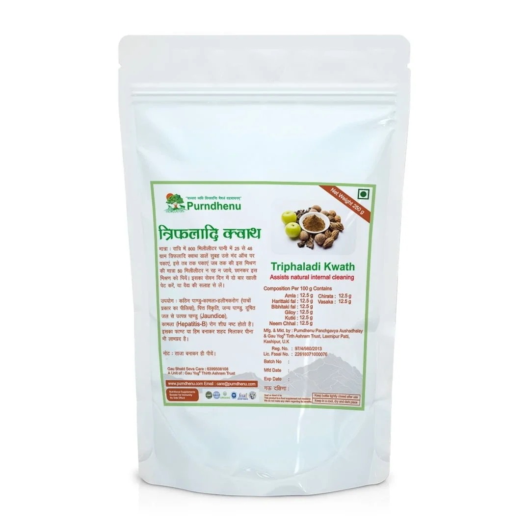 Triphaladi kwath supports three doshas and is helpful in abdominal health, eye, skin and urinary health.
