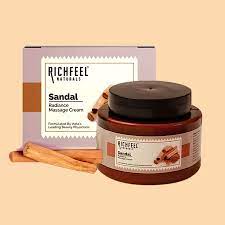 Richfeel Sandal Radiance Massage Cream:Enriched with rich Sandalwood extracts, this unique massage cream acts as a natural anti-septic. It moisturises the skin, evens out the skin tone and makes your skin visibly radiant and bright