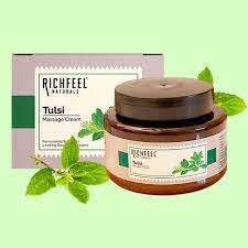Ideal for acne and blemishes problem skin, this massage cream is packed with the goodness of the powerful healing herb Tulsi, well known for its anti-bacterial and anti-fungal properties.