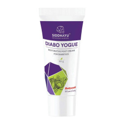 Diabo Yogue Foot Cream hydrates nourishes and softens dry, calloused, and infected feet. A carefully crafted blend of herbal extracts and natural oils, steroids free – well suited for diabetes foot care. Absorbs quickly and deeply to improve circulation. Coconut and sesame oil combine with kokum butter, moisturize and reduce sensitivity in the affected area. The neem oil and herbs curb bacterial infection and reduce pain.