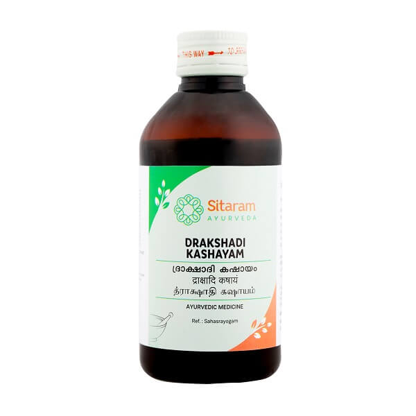 Vata-Pitta aggravation is the hallmark of hormonal imbalance associated with menopause in women. Vata-kopa plays up arthritic pain and rigidity, while Pitta causes hot flushes and irritable gut. Drakshadi Kashayam is a perfect choice to manage menopausal syndrome.