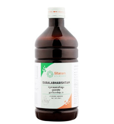 Duralabharishtam is a combination of Duralabha (Tragia involucrata), Danti (Baliospermum montanum), Patha (Cyclea peltata), Agni (Plumbago zeylanica), Vijaya (Terminalia chebula), Vasa (Adathoda vasica), Amalaki (Embilica officinalis), Nagara (Zingiber officinale), Dhataki (Woodfordia fruticosa), Krishna (Piper longum) and Chavya (Piper chaba) in a mildly alcoholic base.