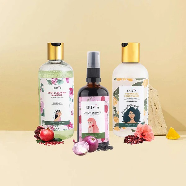 Skivia Deep Cleanse Hair Care Kit Skivia Deep Cleansing Shampoo (300 ml), Skivia Volumising Conditioner For Greasy Hair (200 ml) & Skivia Onion Seed Carrier Oil (100 ml). Skivia Deep Cleansing Shampoo works effectively for those who suffer from a greasy scalp. It gently removes excess oil, dirt & dead skin cells from the scalp. The presence of nourishing ingredients in Skivia Deep Cleansing Shampoo makes the hair soft & silky besides reducing split ends & other hair damage. It is power-packed with antioxidants that help unclog your hair follicles and regulate sebum production thereby boosting new hair growth. Skivia Volumising Conditioner is formulated using all the right ingredients to make your hair soft, bouncy & shiny.