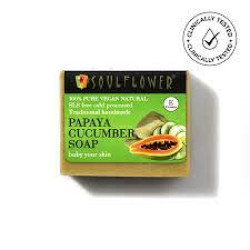 Soul Flower Face Cleansing & Brightening Papaya Cucumber Soap: