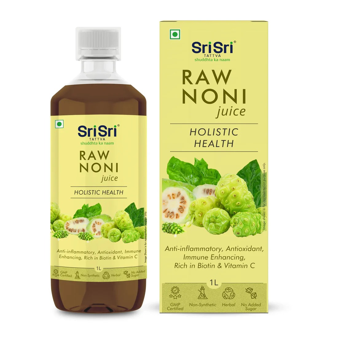Sri Sri Tattva Raw Noni Juice is formulated using noni fruit pulp derived from freshly plucked noni fruits. The juice is made with a combination of noni pulp and fermented noni, which is further fermented to enhance the antioxidant properties. Noni juice has various health benefits like weight management, detoxification, and maintaining healthy joints. It contains antioxidants and helps in boosting immunity. The juice is free from additives like fruit juices or sugar
