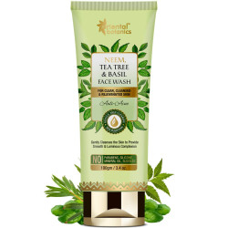 Use Oriental Botanics Neem, TeaTree and Basil Face Wash to mildly remove all the dirt and grime from your face and enhance the appearance of your skin. This Face Wash can help wipe away dead skin cells and assist in revealing the fresh layer of skin underneath. The ingredients, when combined, help make your skin even textured with a youthful glow. Neem has been used to fight acne-causing germs for ages. It also helps to subdue skin irritation. The tea tree has healing properties and helps guard the outer layer of the skin. Basil helps to cleanse your skin profoundly. It is a perfect natural component for those with oily skin conditions as it helps control greasiness without drying out the skin.