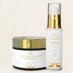 Introducing our Ultimate Skin Protection Combo: a harmonious blend of Shata Dhauta Ghrita, our 100 times washed ghee cream, and Nivr, our SPF 21 and PA++ sunscreen. Immerse yourself in the ancient wisdom of Ayurveda as we combine these two powerhouse products to create a skincare ritual that transcends time.