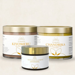 Svarasya’s ‘Sandhya - Every Night Ritual for Radiant Skin and Even Complexion’ ritual is designed to purify, detoxify, and deeply nourish your skin while reducing dark spots and pigmentation. The ritual combines the purifying power of Kiyomeru, the detoxifying benefits of Chandrika, and the nourishing properties of Shata Dhauta Ghrita to offer a comprehensive nighttime skincare solution for radiant and even-toned skin.