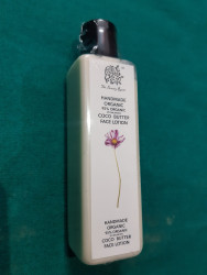 A nourished cocoa butter lotion made with 95% organic cold pressed with pista oil and sweet almond oil that deeply nourish dry and dehydrated skin these ulta-rich formulation helps protect from dryness, roughness, dullness, rejuvenates and restores skins natural long lasting. The smoothening merge of coco butter and shea butter helps in reviving rough, dry and dullness skin for a naturally healthy appearance Tulsi leave juice , alluvial protect and hydrate the skin leaving smooth, soft, comfortable, glowing and shine.