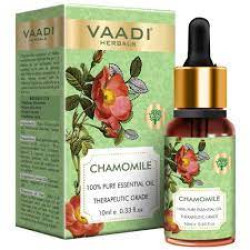 Chamomile essential oil helps revitalize and hydrate the skin. It works as an antiseptic and soothes acne with its natural anti-inflammatory properties. It also relaxes senses with its calming fragrance, and acts as a natural solution for dandruff and dull hair.