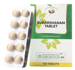 Vaidyaratnam Sudarshanam Gulika Tablet is an effective Ayurvedic solution for treating liver and spleen disorders, fever, intermittent fever, chronic fever, and abdominal lumps. It helps in detoxifying the body and restoring balance, promoting overall health.