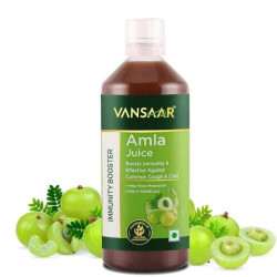 Vansaar introduces Amla Juice, priced at just Rs. 270.00 per bottle. This 100% cold-pressed Amla Juice is specially formulated to strengthen your immunity naturally. Each bottle packs the power of 75 raw Amlas, delivering a potent dose of Vitamin C and other essential nutrients. Amla, known for its health benefits, not only boosts immunity but also nourishes the skin, giving it a healthy glow and promoting hair growth.