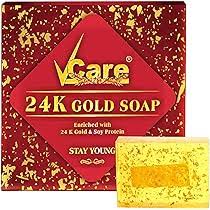 VCare 24K Gold Soap, is an ancient royal luxury secret to keeping your skin young . The bathing soap contains fine colloidal gold, which dissolves into your skin, providing firmness and radiance. With soy protein, your dry skin is hydrated extensively, retaining moisture throughout the day. The gold soap reduces wrinkles, keeping you looking youthful and glowing. Experience luxury with this best soap for women and men suitable for all skin types.