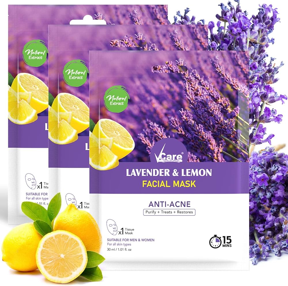 Indulge in the ultimate pampering experience with our VCare Lavender & Lemon Facial Sheet Mask for both women and men! Infused with the calming scent of lavender and the refreshing essence of lemon, this serum sheet mask soothes, hydrates, and rejuvenates the skin, leaving it soft, supple, and glowing. Whether you're looking to de-stress after a long day or simply want to pamper yourself, our face sheet mask for face is the perfect addition to your skincare routine!