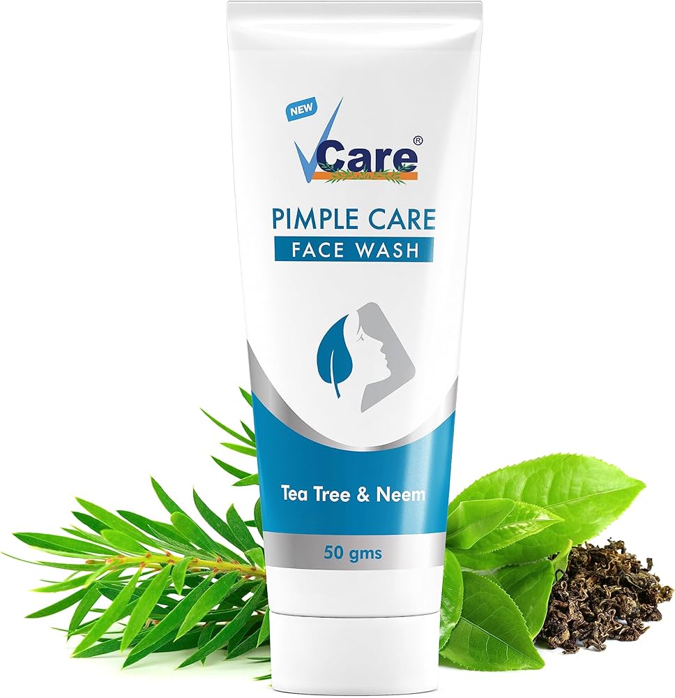 Introducing VCare Pimple Care Face Wash, a sulfate-free formula that blends Tea Tree Extract and Neem Extract to prevent acne and deeply cleanse the skin. With microbial proliferation and sebum secretion under control, this face wash for oily skin delivers even-toned skin and gradual texture improvement. The gentle face cleanser helps control pimples and skin blemishes, while also preventing future breakouts.