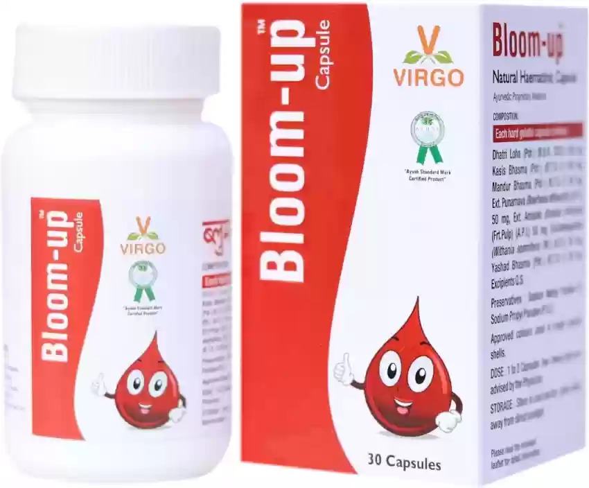Bloom-up Capsule is Herbo-mineral combination of Haematinics and Hepato-stimulant ingredients.