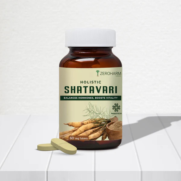 Zeroharm Holistic Shatavari Tablets : Balanced hormones, Boosts overall health Reduces acne,Improves chances of conception.